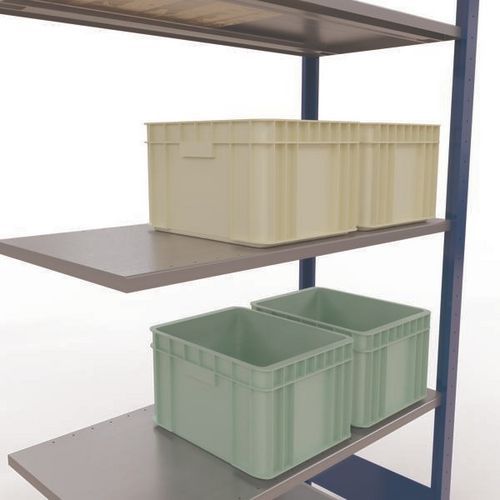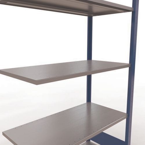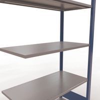 Système de rayonnage robuste et très complet avec belle finition peinte époxy, gris ou bleu. Tablettes pleines acier tôlé pouvant supporter des marchandises de multiples dimensions. Étagère industrielle facile et rapide à monter par emboîtement, sans outillage particulier. Extension de rayonnage aisée avec l'adjonction de 1 ou plusieurs éléments suivants.
