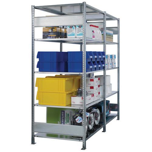 - Rayonnage d'entrepôt robuste, finition galva ultra-résistante aux environnements humides.