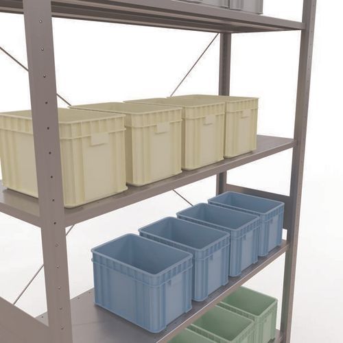 Rayonnage d'entrepôt robuste, finition galva ultra-résistante aux environnements humides. Tablettes pleines acier tôlé pouvant supporter des marchandises de multiples dimensions. Étagère industrielle facile et rapide à monter par emboîtement, sans outillage particulier. Extension de rayonnage aisée avec l'adjonction de 1 ou plusieurs éléments suivants. Distance entre les perforations : 25 mm. Hauteur de la première perforation : 50 mm. Hauteur de la première perforation : 22,5 mm.
