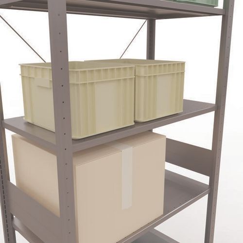 Rayonnage d'entrepôt robuste, finition galva ultra-résistante aux environnements humides. Tablettes pleines acier tôlé pouvant supporter des marchandises de multiples dimensions. Étagère industrielle facile et rapide à monter par emboîtement, sans outillage particulier. Extension de rayonnage aisée avec l'adjonction de 1 ou plusieurs éléments suivants. Distance entre les perforations : 25 mm. Hauteur de la première perforation : 50 mm. Hauteur de la première perforation : 22,5 mm.