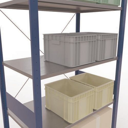 Rayonnage d'entrepôt robuste, finition galva ultra-résistante aux environnements humides. Tablettes pleines acier tôlé pouvant supporter des marchandises de multiples dimensions. Étagère industrielle facile et rapide à monter par emboîtement, sans outillage particulier. Extension de rayonnage aisée avec l'adjonction de 1 ou plusieurs éléments suivants. Distance entre les perforations : 25 mm. Hauteur de la première perforation : 50 mm. Hauteur de la première perforation : 22,5 mm.