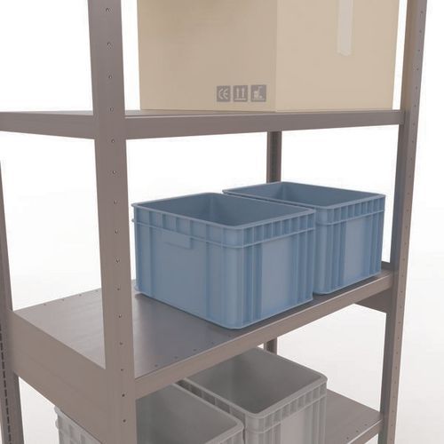 Rayonnage d'entrepôt robuste, finition galva ultra-résistante aux environnements humides. Tablettes pleines acier tôlé pouvant supporter des marchandises de multiples dimensions. Étagère industrielle facile et rapide à monter par emboîtement, sans outillage particulier. Extension de rayonnage aisée avec l'adjonction de 1 ou plusieurs éléments suivants. Distance entre les perforations : 25 mm. Hauteur de la première perforation : 50 mm.