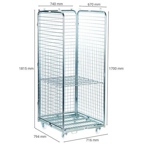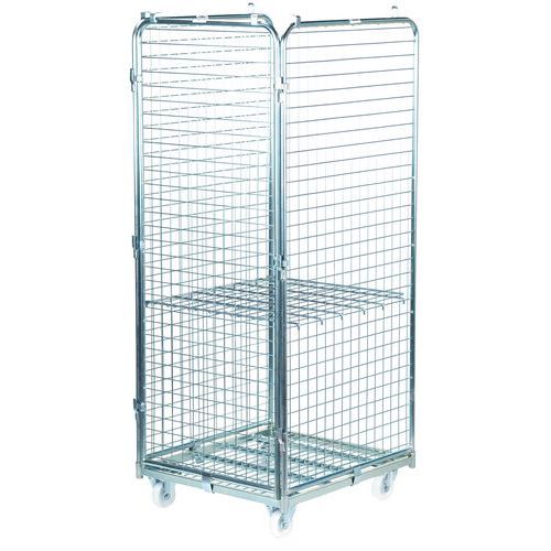 Roll conteneur acier 3 côtés et 1 étagère, Force: 400 kg, Hauteur hors tout: 1815 mm