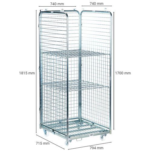 Roll conteneur acier 3 côtés et 2 étagère, Force: 400 kg, Hauteur hors tout: 1815 mm