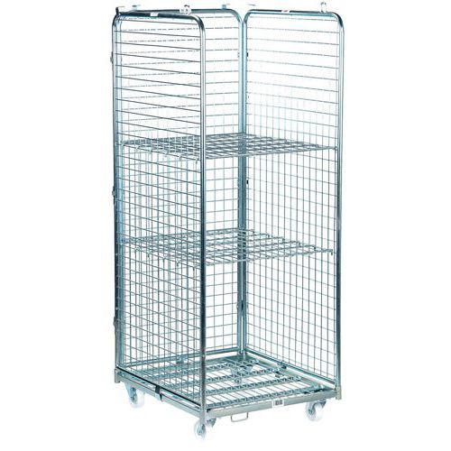 Roll conteneur acier 3 côtés et 2 étagère - Capacité 400 kg - Manutan Expert