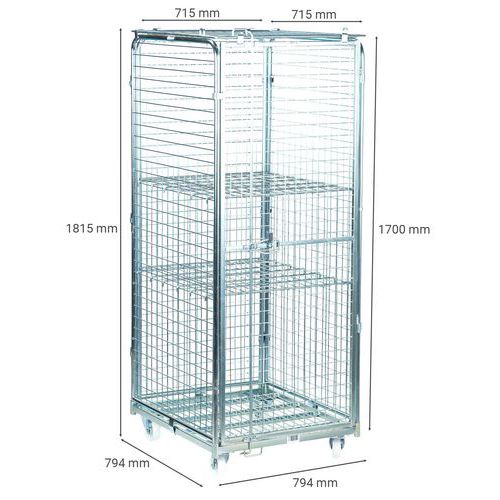 Roll-conteneur de sécurité, Force: 400 kg, Hauteur hors tout: 1815 mm, Longueur hors tout: 794 mm