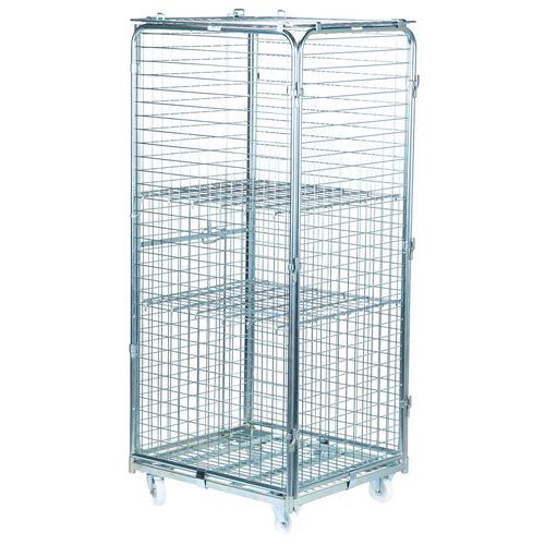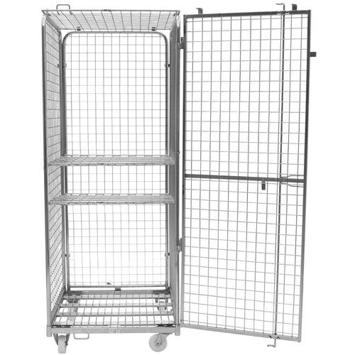 - Chariot de transport fermé avec côtés et toit grillagé.