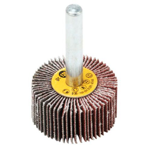- Roue à lamelles sur tige, pour un usage de nettoyage et finition multi-matériaux.