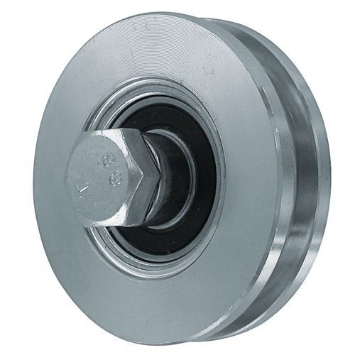 - Roue en acier zingué avec rainure rectangulaire pour un guidage optimal dans les rails.