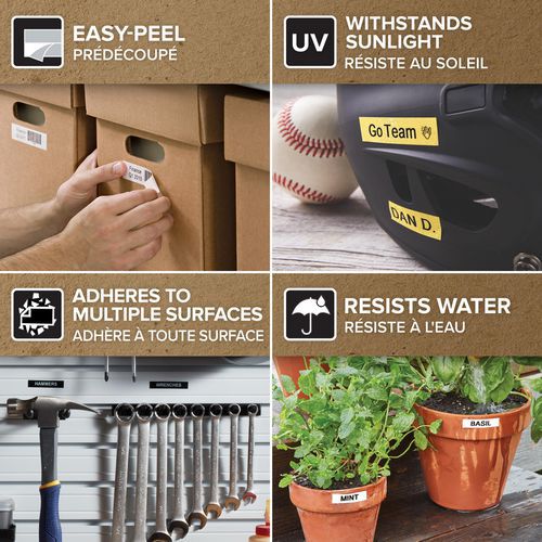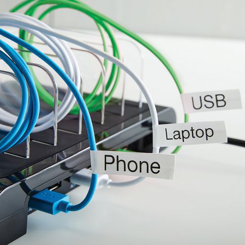 Les étiquettes en nylon flexible Dymo D1 permettent la réalisation d'une large gamme d'applications d'étiquetage aussi bien domestiques que professionnelles.
