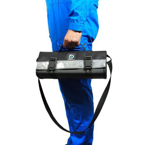 Composition : - 1 fermeture par rabat souple et 2 fermoirs - 1 grand compartiment pour le rangement des outils - 1 poignée centrale de portage main - 2 poignées latérales de portage mains - 1 bandoulière de portage épaule.