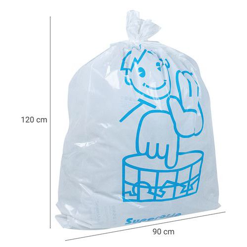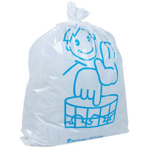 Sac Poubelle Blanc Otje est deux fois plus épais que les sacs poubelle traditionnels. Forte résistance à la déchirure. Impression de signalisation des deux côtés. Sac-poubelle réutilisable.