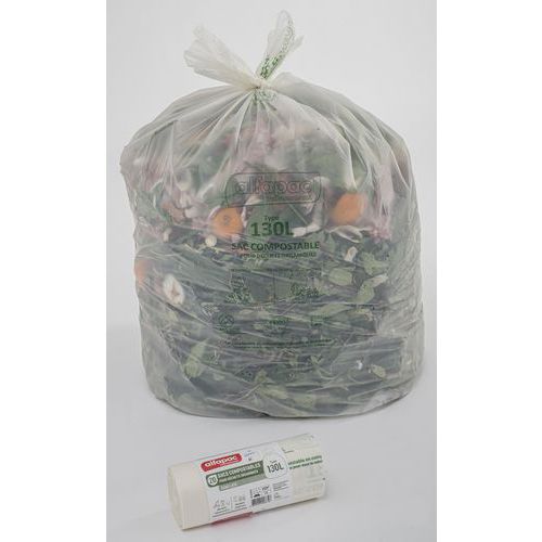 | Intitulé du produit | Sac poubelle compostable, Capacité: 130 L, Épaisseur: 32 µm, Hauteur: 1150 mm |