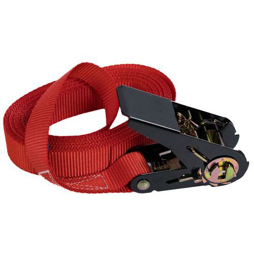 | Intitulé du produit | Sangle d'arrimage à tendeur cliquet, Longueurs: 5 m, CMU: 350 kg, Largeur: 25 mm, Coloris: Rouge |