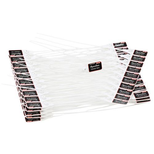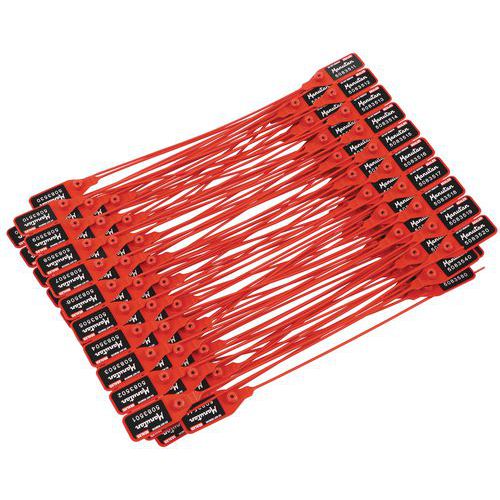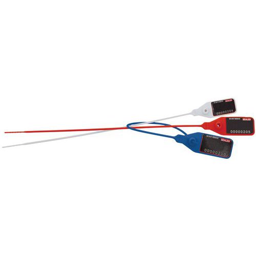 Scellé à identification par numérotation unique. Marquage : chiffrage par série (11, 12, 13, etc.). Scellé avec tige lisse avec mécanisme de fermeture métallique.