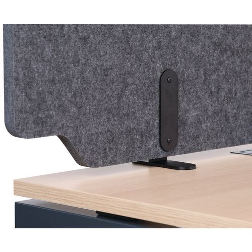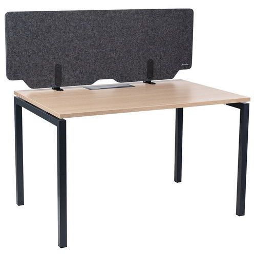 Séparateur de bureau double fonctionnalité apporte de l'intimité et de l'absorption acoustique. Séparateur en pose libre sur le bureau- flexibilité dans l'utilisation- très léger le produit se déplace très facilement. Produit facile à poser avec une découpe facilitant le passage de câble- (2 pieds noirs).. Découpe pour faciliter le passage des câbles électriques. 2 coloris chics et intemporels design de découpe original.