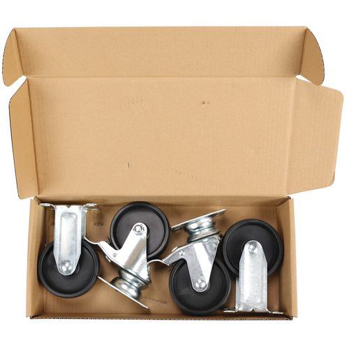 - Stabilité: roues optimisées 2 fixes + 2 pivotantes à frein.