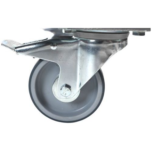 Equipée de 2 roulettes pivotantes avec frein et de 2 roulettes fixes, la servante se manœuvre facilement et peut être immobilisée en toute sécurité.