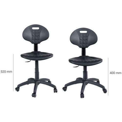 | Intitulé du produit | Siège d'atelier ergonomique, Avec accoudoir: non, Type de pied: Roulettes, Assise matériau: Polyuréthane |