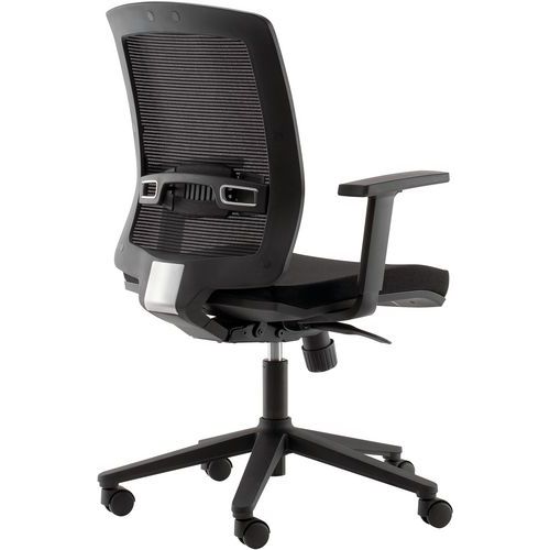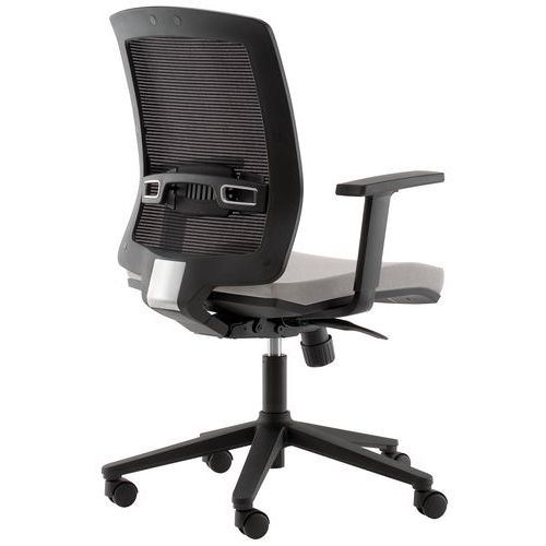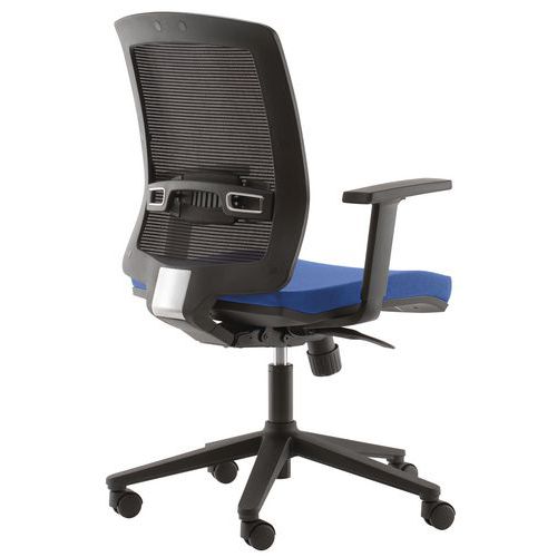 Siège de bureau avec accoudoirs et dossier résille, très confortable.