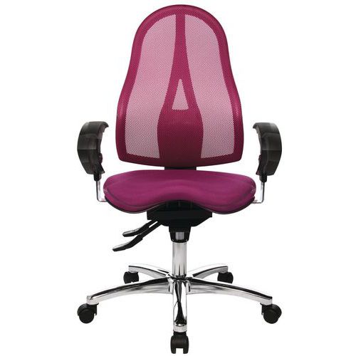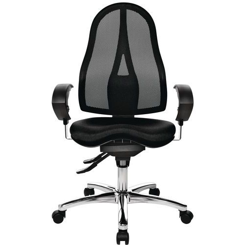 Siège de bureau ergonomique doté du contact permanent avec réglage en fonction du poids. Assise Fitness-Ortho mobile en 3D grâce à la technologie Sitness®, pour un dos plus fort, une meilleure posture et plus de confort au quotidien. Vérin pneumatique pour régler la hauteur et la profondeur d'assise. Dossier également réglable en hauteur pour plus de confort. Blocage du mécanisme en 3 positions différentes. Plus de maintien avec les accoudoirs réglable en hauteur de 26 à 32cm. Tissu 100% polypropylène (440 g/m²). Idéal pour le télétravail