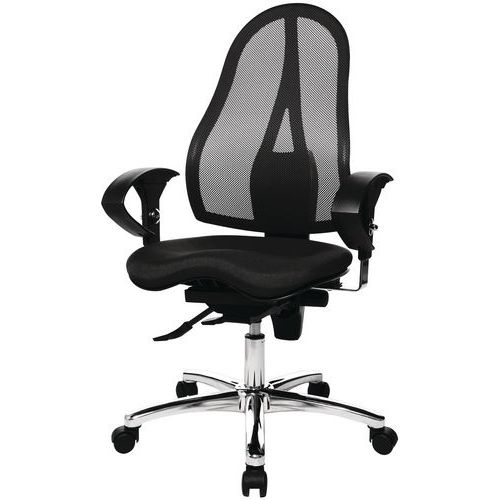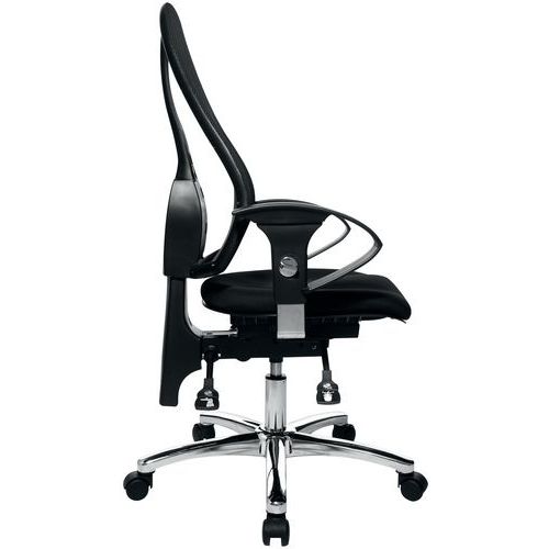 Siège de bureau ergonomique doté du contact permanent avec réglage en fonction du poids. Assise Fitness-Ortho mobile en 3D grâce à la technologie Sitness®, pour un dos plus fort, une meilleure posture et plus de confort au quotidien. Vérin pneumatique pour régler la hauteur et la profondeur d'assise. Dossier également réglable en hauteur pour plus de confort. Blocage du mécanisme en 3 positions différentes. Plus de maintien avec les accoudoirs réglable en hauteur de 26 à 32cm. Tissu 100% polypropylène (440 g/m²). Idéal pour le télétravail