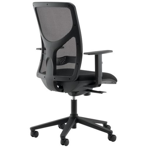 Siège de bureau avec accoudoirs et dossier résille, très confortable.