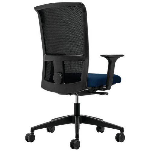 Siège de bureau pivotant pour une mobilité optimale. Dossier haut rembourré pour un soutien optimal du dos. Système de mécanisme synchrone avec réglage automatique de la tension. Soutien lombaire réglable en hauteur pour s'adapter à votre morphologie. Accoudoirs en T 4D pour soulager la musculature du cou et de la nuque.