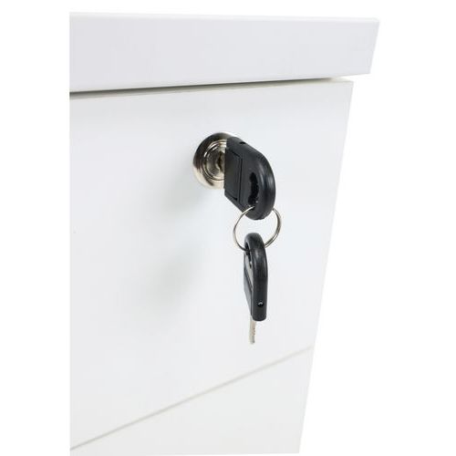 Caisson avec tiroirs en panneaux de particules surfacés mélaminés. Mobilier équipé de roulettes anti-basculement. Verrouillage avec serrure à cylindre (1 seul tiroir). Un programme efficace et robuste d’une installation aisée