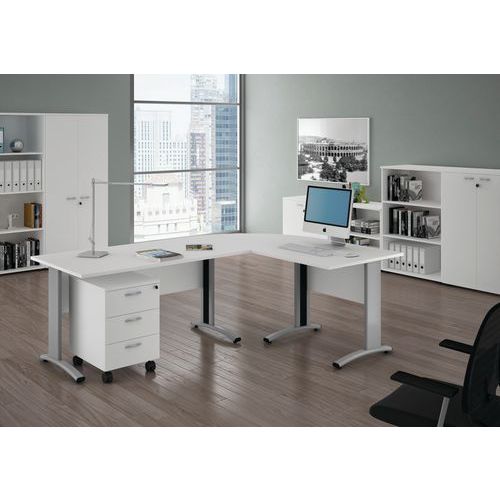 Caisson avec tiroirs en panneaux de particules surfacés mélaminés. Mobilier équipé de roulettes anti-basculement. Verrouillage avec serrure à cylindre (1 seul tiroir). Un programme efficace et robuste d’une installation aisée