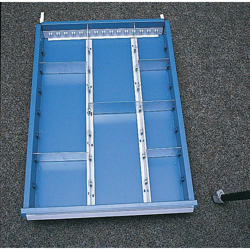 Solution d'aménagement pour tiroir Modul - 2 séparateurs longitudinaux et 6 séparateurs transversaux.