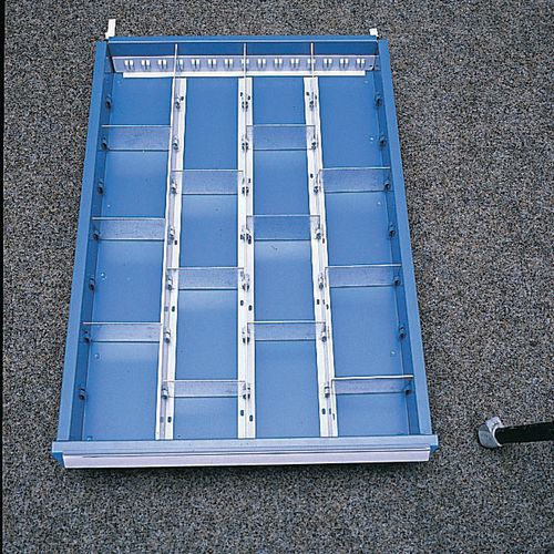 Solution d'aménagement pour tiroir Modul - 3 séparateurs longitudinaux et 12 séparateurs transversaux.