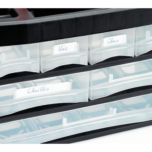- Avec porte-étiquettes pratique sur les tiroirs transparents.