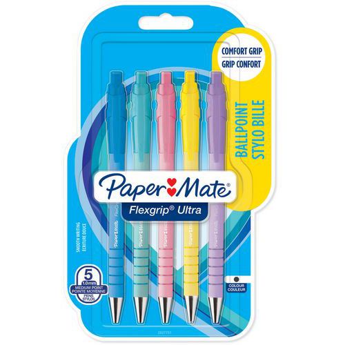Stylo rétractable Flexgrip Ultra -Blister de 5 - Papermate