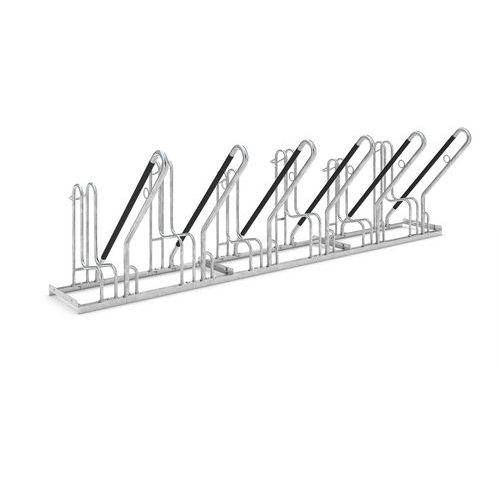Support cycle moderne. Avec des arceaux extra-sécurisés qui protègent vos vélos contre le vol. Résistant aux intempéries. Finition galvanisée de qualité n'abîmant pas les jantes et les roues. Supports de fixation au sol inclus.