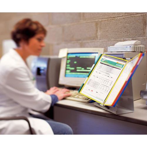 - Support de bureau allant de 10 à 50 pochettes de présentation.