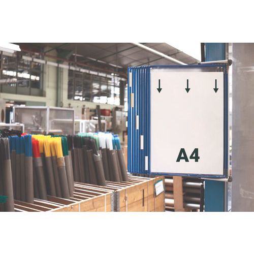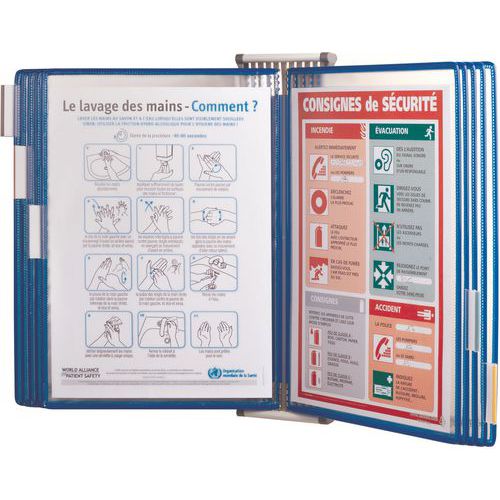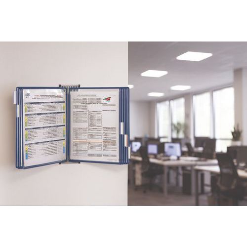 Support mural à pivot 10 pochettes pour format A4, Support matériau: Acier, Coloris: Bleu Support mural à pivot 10 pochettes pour format A4, Support matériau: Acier, Coloris: Bleu