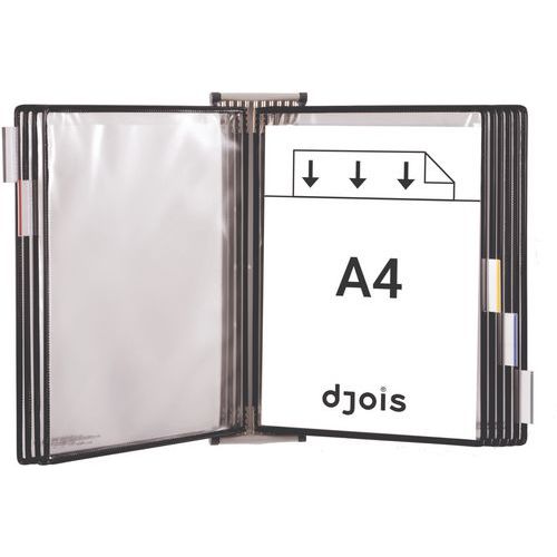 Support mural à pivot 10 pochettes pour format A4, Support matériau: Acier, Coloris: Noir Support mural à pivot 10 pochettes pour format A4, Support matériau: Acier, Coloris: Noir
