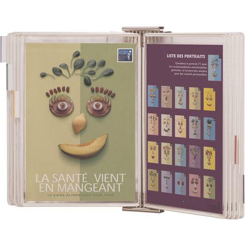 Avec 10 poches pivotantes en PVC Sterifold antimicrobiennes avec pivots métalliques.
