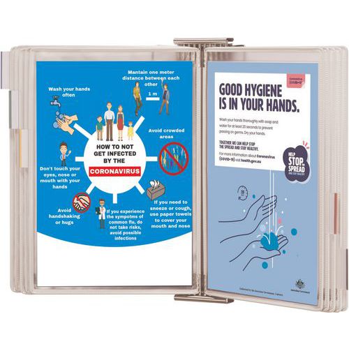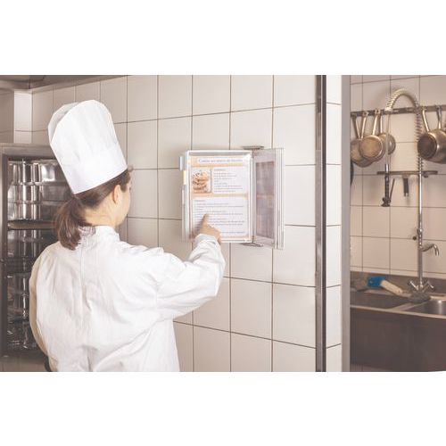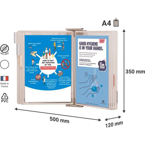 Kit mural antimicrobien à pivot pour mise à disposition hygiénique de documents.