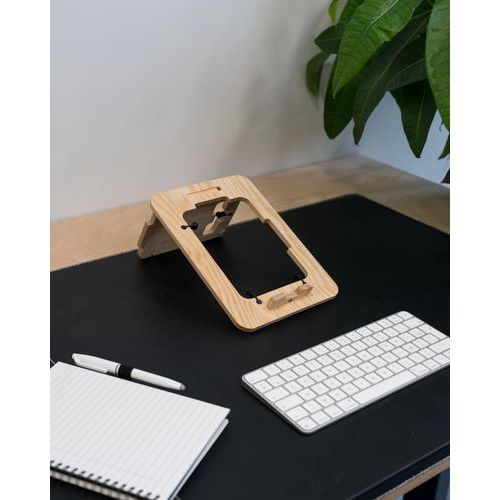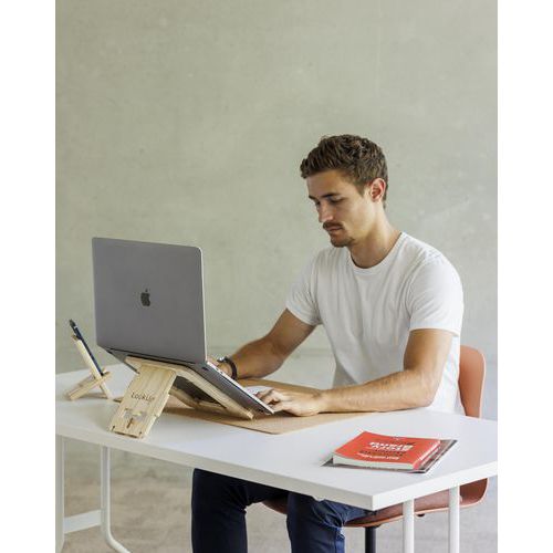Support ordinateur bois ADASO13 LookUp, améliore naturellement votre posture et votre environnement de travail. Vous aide à réduire vos tensions musculaires au bureau et à la maison. Un design encastrable et léger, facilement transportable. Compatible pour vos PC et MacBook. Utilisable avec et sans clavier déporté. S’adapte instantanément à votre utilisation grâce à sa double inclinaison possible. Fabriqué en bois de pin revalorisé.