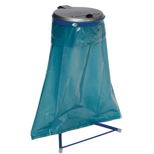 Support sac-poubelle standard bleu avec couvercle - 120 L