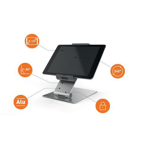| Intitulé du produit | Support tablette de table, Charge maxi: 1 kg, Matériau: Aluminium, Hauteur: 242 mm |