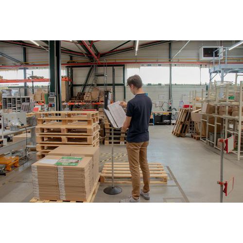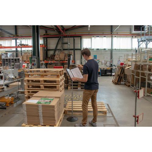 - Système de présentation sur pied métal efficace pour une gestion Lean de l'information.