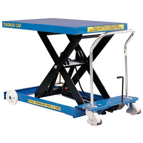 | Intitulé du produit | Table élévatrice mobile, Force: 1250 kg, Plateau hauteur maxi: 1050 mm |