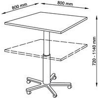 Table ergonomique. Réglage progressif en hauteur de 72 cm à 114 cm. Idéale pour une utilisation en table d'appoint