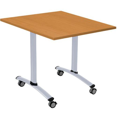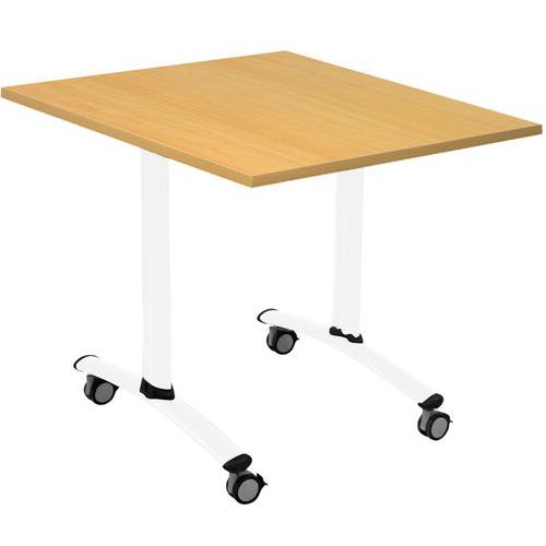 Table de réunion carrée pliante Axe avec plateau pivotant permettant un gain de place pour le rangement. Verrouillage automatique du plateau en position travail (horizontal) et position verticale (stockage) . Système de liaison rapide entre les plateaux par vis molette. Equipée de 4 roulettes Ø 75 mm avec frein.Table de réunion carrée pliante Axe avec plateau pivotant permettant un gain de place pour le rangement. Verrouillage automatique du plateau en position travail (horizontal) et position verticale (stockage) . Système de liaison rapide entre les plateaux par vis molette. Equipée de 4 roulettes Ø 75 mm avec frein. Chants ABS épaisseur 2 mm. Piètement métal laqué époxy. Fabriquée en France. Livrée pieds démontés.