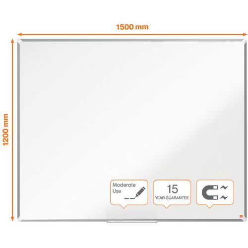 Tableau en acier laqué Premium Plus. Surface en acier laqué magnétique avec cadre moderne en aluminium. Un grand auget qui permet de ranger facilement les marqueurs, les effaceurs ou autres accessoires pour tableau blanc. Bon niveau d'effaçabilité pour une utlisation fréquente. Certifié EU EcoLabel, ce produit garantit un impact environnemental réduit à chaque étape de son cycle de vie, tout en répondant à des critères stricts de qualité et de durabilité.