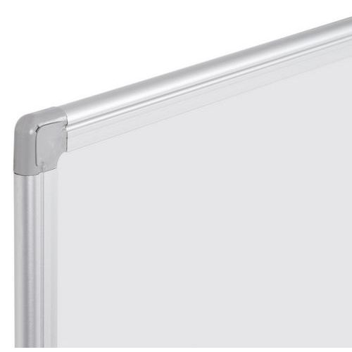 Tableau blanc magnétique pour écrire, effacer, réécrire et afficher des informations avec des aimants. Brainstorm, expliquez et analysez, tout en un seul endroit : la solution idéale pour les centres de formation et les bureaux. Surface émaillée effaçable à sec, lisse et résistante aux rayures, idéale pour un usage intensif. Cadre Maya en aluminium robuste et avec bords et coins arrondis. Système d'installation fiable à 4 coins pour montage mural horizontal ou vertical (kit de fixation inclus). Auget facile à assembler pour les marqueurs effaçables à sec, le nettoyant pour tableau blanc et la brosse. La surface émaillée est une surface d'écriture effaçable à sec, résistante aux rayures, durable mais lisse. I. Fixation murale horizontale ou verticale avec des vis qui traversent les trous des coins en plastique. Système de montage simple, solide et robuste. Solution économique qui permet d'économiser de l'espace.