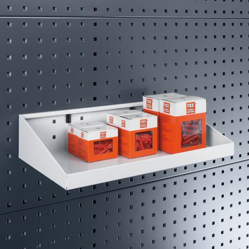 Tablette pratique pour vos composants d'atelier. Modèle robuste de 6 mm d'épaisseur. Fixez le support en un tournemain à l'aide des clips de sûreté en plastique.